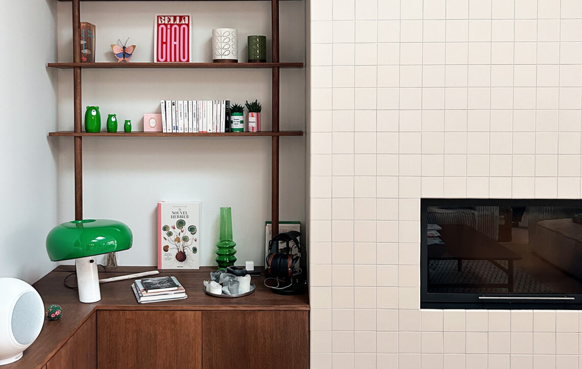 – Pour le mur de 3m du salon, j’ai proposé une grande bibliothèque aérienne sur mesure afin d’attirer le regard sur la hauteur sous plafond.
