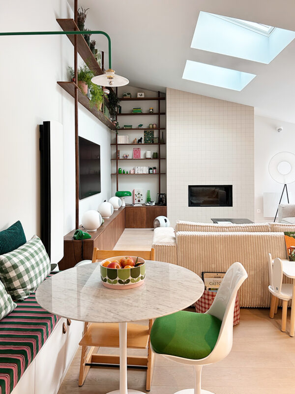 Après cette visite, nous avons poursuivi la réunion dans leur ancienne maison. Cela m’a permis de m’imprégner de leur univers coloré, scandinave et chaleureux. Avant d’imaginer la transformation, j’aime toujours poser des questions sur les habitudes de vie, cela me permet de leur créer un aménagement personnalisé, adapté et cohérent à leurs gouts et mode de vie.