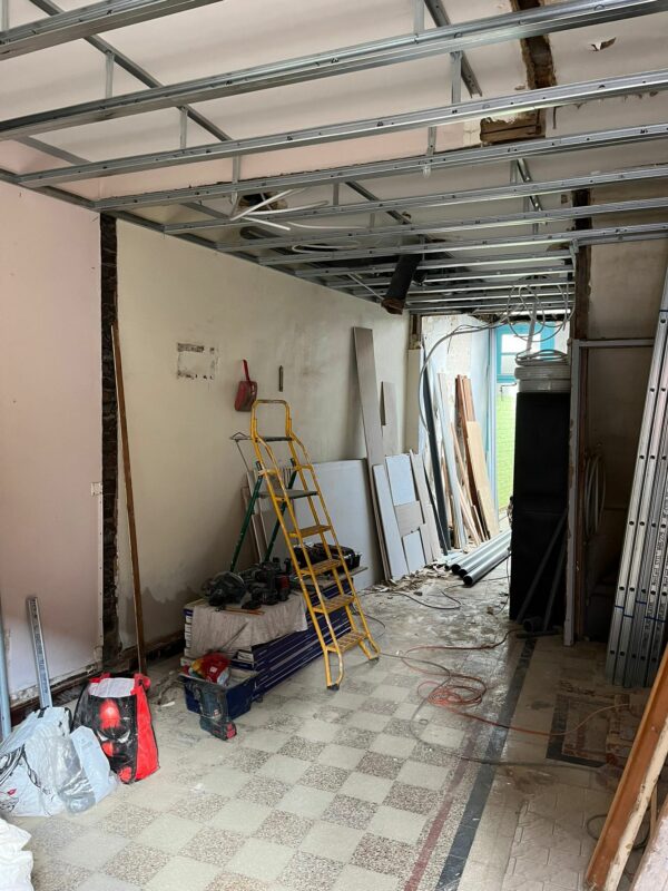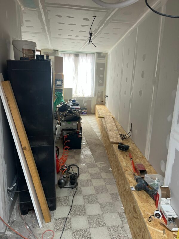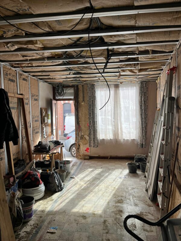 Après une mise à nu de toute la maison pour repartir sur une base saine, refaire toutes les évacuations, poser les sols…