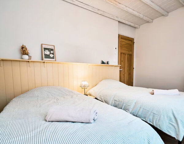 Quelques luminaires colorés et des affiches graphiques, et le tour est joué ! Cette chambre respire la légèreté et le charme d’une cabane en bord de mer, tout en restant cosy et fonctionnelle.